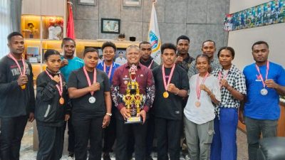 Foto: Irfan | Tampak Wabup Haris Richard S. Yocku, SH., berfoto bersama atlit tinju, di…