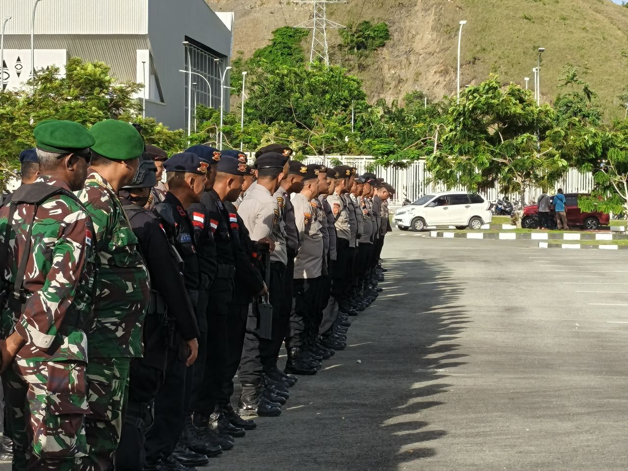 Foto: istimewa / Nampak Personel gabungan TNI-Polri di Stadion Lukas Enembe, Kampung Harapan, Sentani Timur, (26/4).