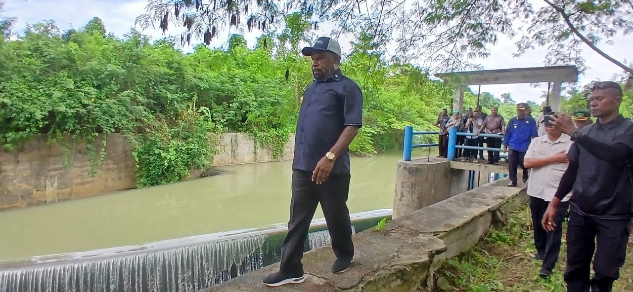 Foto: Irfan | Tampak Bupati Jayapura Dr. Yunus Wonda, SH., MH., meninjau bendungan di Nimbokrang, Kamis (6/11).