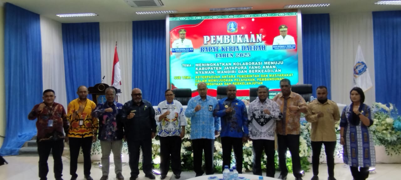 Sentani, Jurnal Mamberamo Foja — Bupati Jayapura, Dr. Yunus Wonda, S.H., M.H., secara resmi membuka Rapat Kerja Daerah (Rakerda) Pemerintah Kabupaten Jayapura Tahun 2025 yang digelar di Aula Lantai II Kantor Bupati Jayapura, Gunung Merah, Sentani, Kamis (8/5/2025). Ia didampingi Wakil Bupati Haris Richard S. Yocku, S.H.