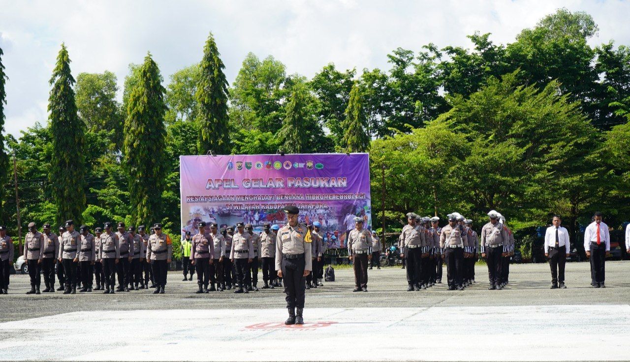 Sentani, jurnalmamberamofoja.com — Menghadapi potensi bencana hidrometeorologi di musim hujan, Polres Jayapura menggelar Apel Kesiapsiagaan Tanggap Darurat di lapangan Kantor Bupati Jayapura, Rabu (5/11) pukul 09.00 WIT. Kegiatan ini dipimpin langsung Kapolres Jayapura, AKBP Umar Nasatekay, S.I.K.