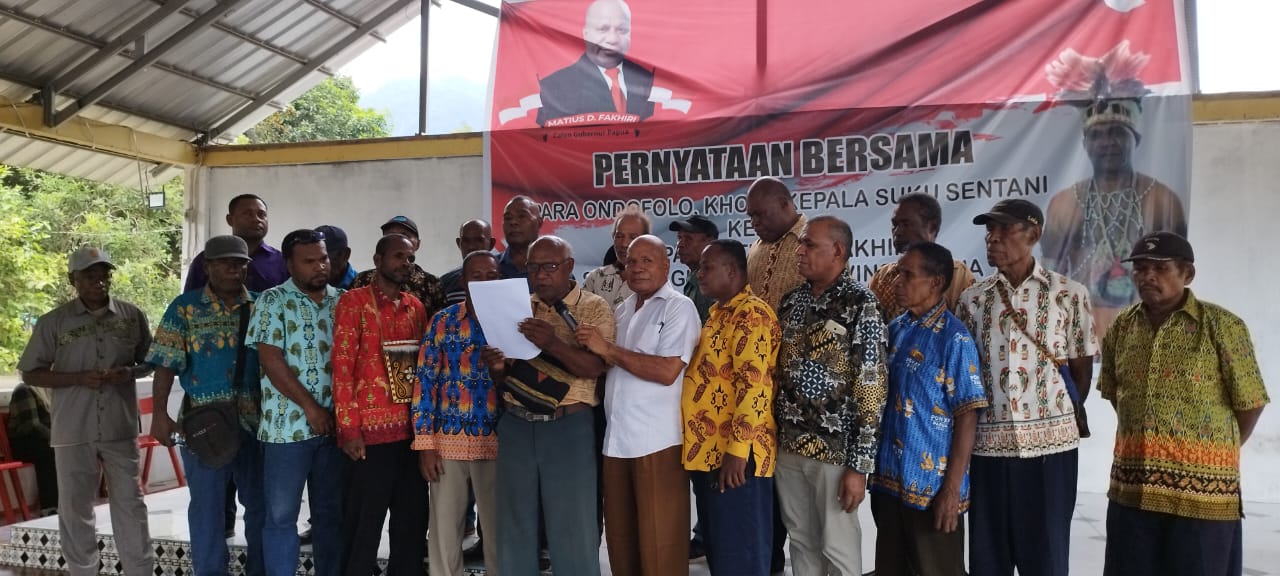 Sementara itu ditempat yang sama, Yo’ Ondofolo Kampung Babrongko Ramses Wally menyampaikan, bahwa seluruh Ondofolo dan Khose (Kepala Suku) yang ada di Sentani telah membuat sebuah pernyataan sikap bersama mendukung Mathius Derek Fakhiri menjadi Gubernur Papua periode 2024-2029.