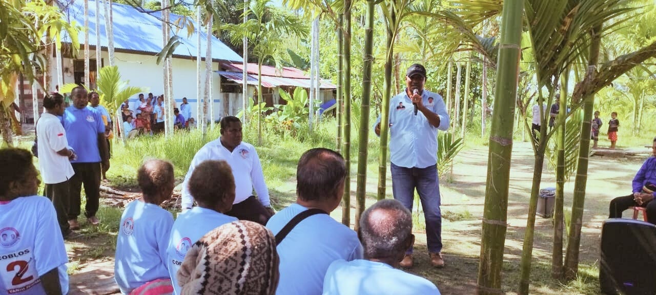 Kampanye di Kampung Aruswar turut dihadiri oleh Calon Wakil Bupati Jemmi Esau Maban dan beberapa pengurus partai koalisi pendukung pasangan Yanni-Jemmi.