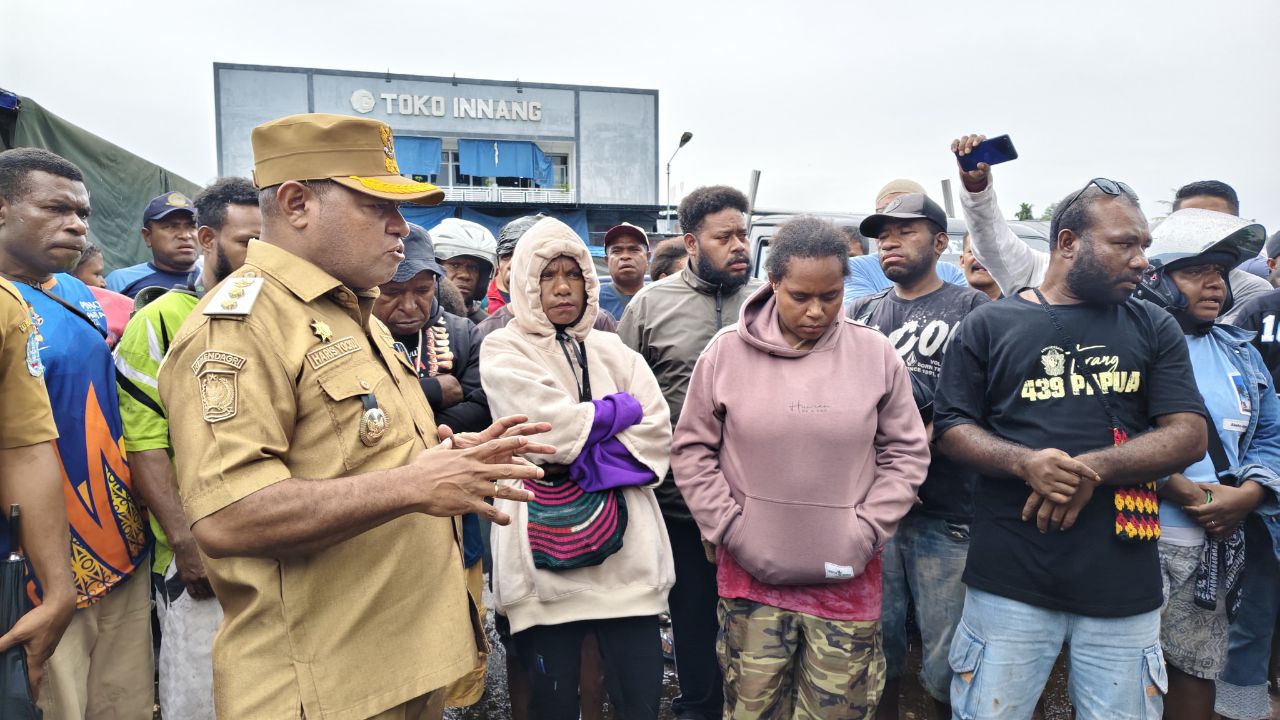 Sentani, jurnalmamberamofoja.com — Wakil Bupati Jayapura, Haris Richard Yocku, S.H., turun langsung ke Pasar Pharaa Sentani, Selasa (11/11), untuk menenangkan situasi pascaaksi spontan sejumlah Mama-Mama Papua penjual buah yang memprotes penutupan area jualan mereka di sekitar pasar.