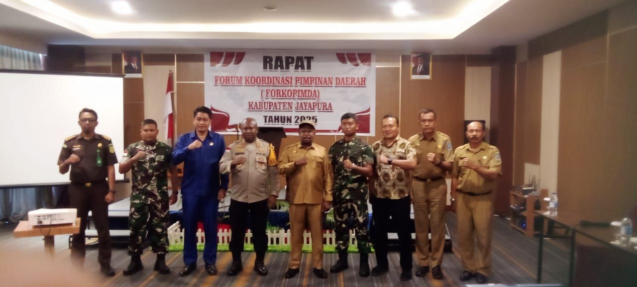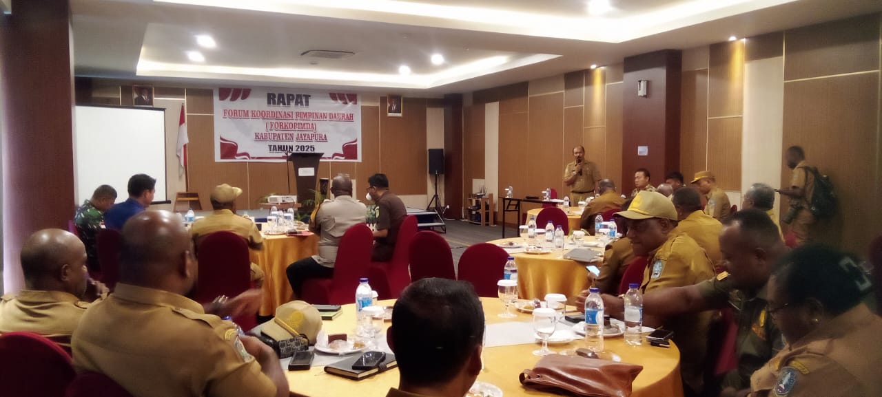 Rapat dipimpin langsung oleh Bupati Jayapura Dr. Yunus Wonda, SH., MH., dan dihadiri unsur Forkopimda, Plt Sekda Abdul Rahman Basri, serta sejumlah kepala OPD di lingkup Pemkab Jayapura.