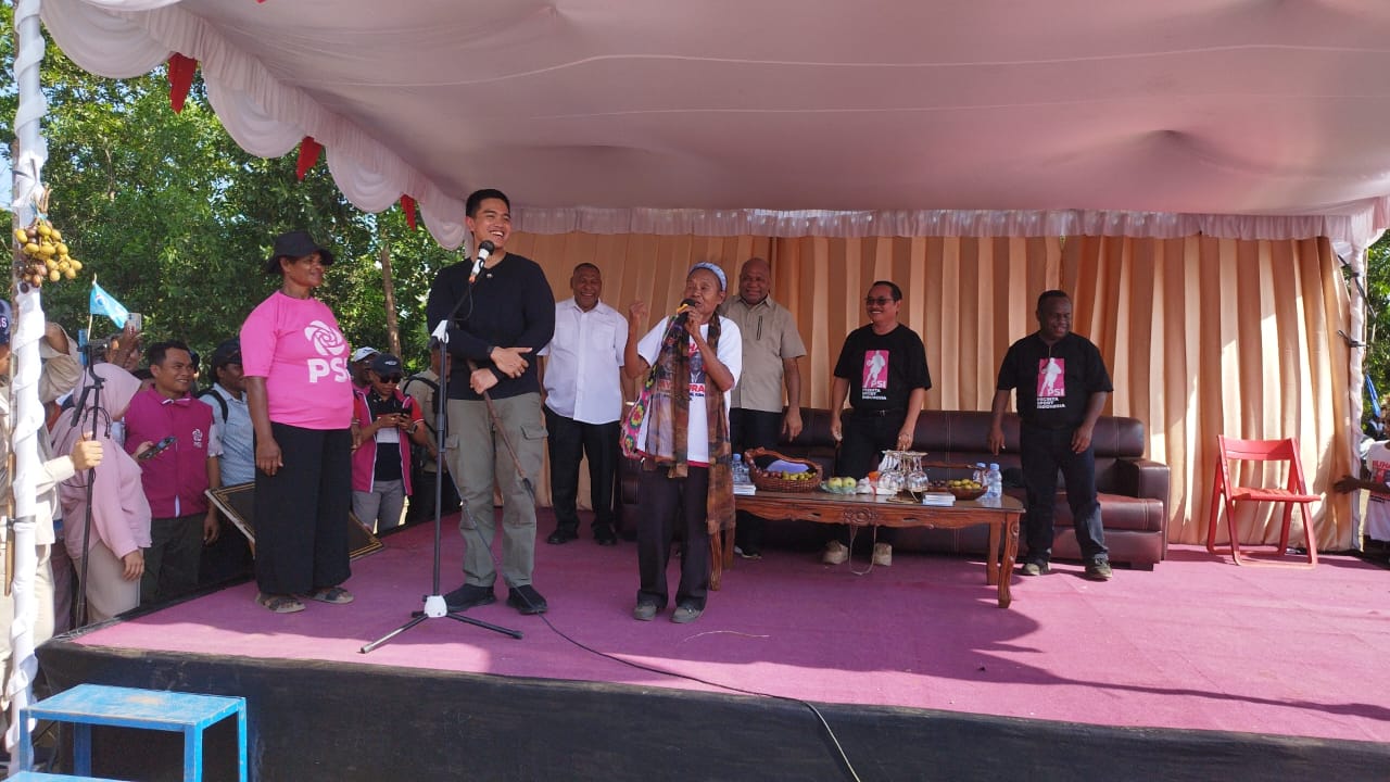 Dok JMF/ Tampak Ketua Umum DPP PSI Kaesang Pangarep ketika menghadiri tatap muka paslon Bupati dan Wakil Bupati Jayapura Nomor Urut 4 Yohannis Manangsang Wally-Daniel Mebri, di Bukit Formokho, Kampung Nendali, Distrik Sentani Timur, Jumat, (22/11).