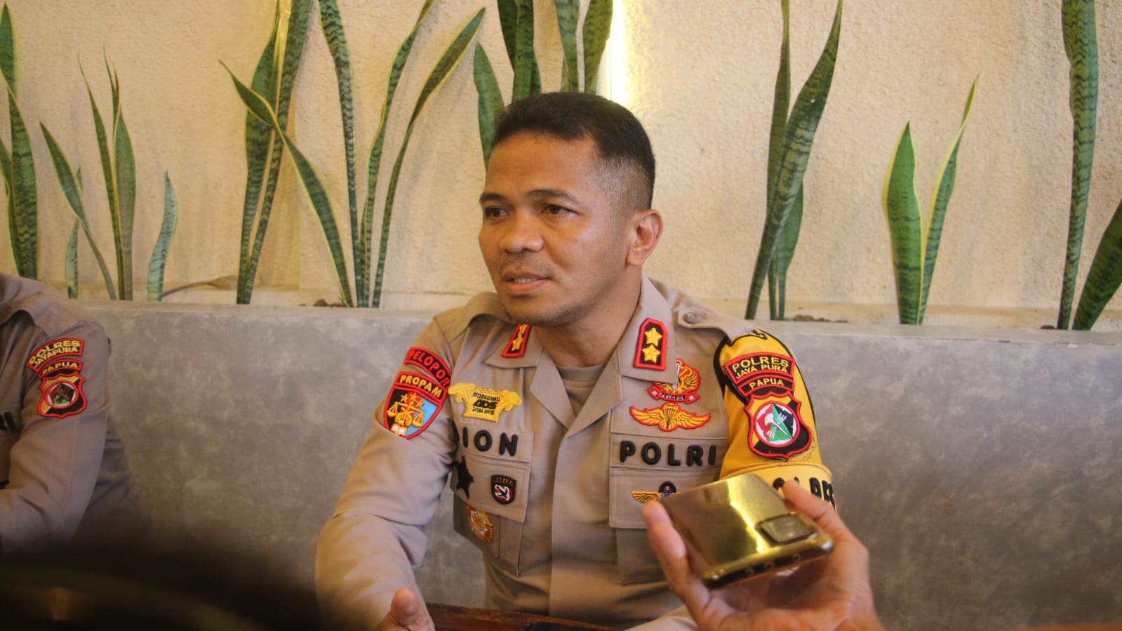 Foto: Irfan | Tampak Kapolres Jayapura AKBP Dionisius Helan, SIK., MH., usai mediasi di Mapolres Jayapura, Selasa (21/4).