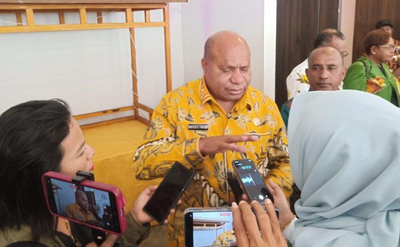 Foto: Sony | Tampak Gubernur Matius Fakhiri ketika diwawancarai awak media di Abepura usai mengikuti Musrenbang RKPJ, Kamis (30/4).