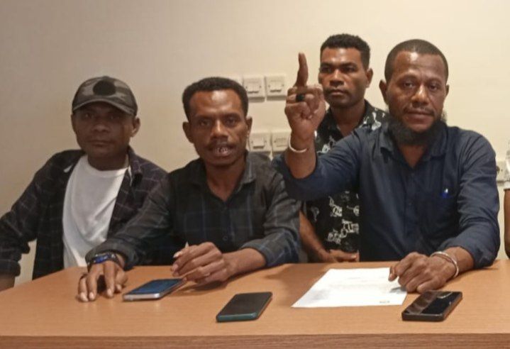 Foto: Andre | Tampak ketua KMP3R Paul Ohee, SH., didampingi dan Rando Rudamaga ketika memberikan keterangan pers, Selasa (27/8) di Jayapura.