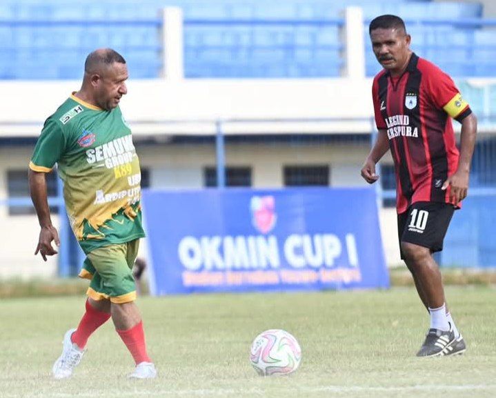 Laga Pembuka Okmin Cup I Meriah, Wabup Jayapura Cetak Gol Lawan Persipura Legend