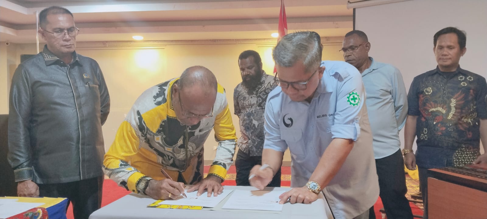 Penandatanganan MoU dilakukan langsung oleh Bupati Mamberamo Raya Robby Wilson Rumansara, S.P., M.H., disaksikan oleh Ketua Sementara DPRK Dony Pateh, Kepala Dinas Perhubungan Eduard Tasti, Kepala Bappeda, serta perwakilan dari PT. Belibis.