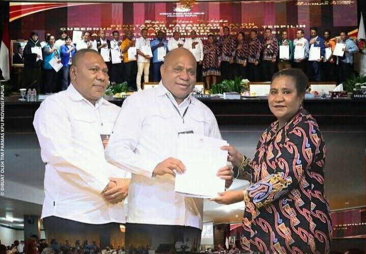 Jayapura, jurnalmamberamofoja.com – Komisi Pemilihan Umum (KPU) Papua akhirnya menetapkan pasangan Matius Fakhiri dan Aryoko Rumaropen sebagai Gubernur dan Wakil Gubernur Papua terpilih periode 2025–2030.
