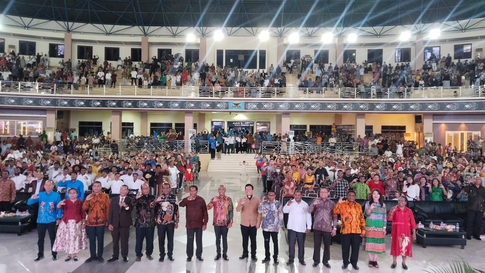 Pesan tersebut disampaikan di hadapan para dosen, tenaga kependidikan, mahasiswa, serta tamu undangan dalam ibadah dan Perayaan Natal Uncen 2025 yang berlangsung di Auditorium Uncen, Abepura, Senin (8/12).
