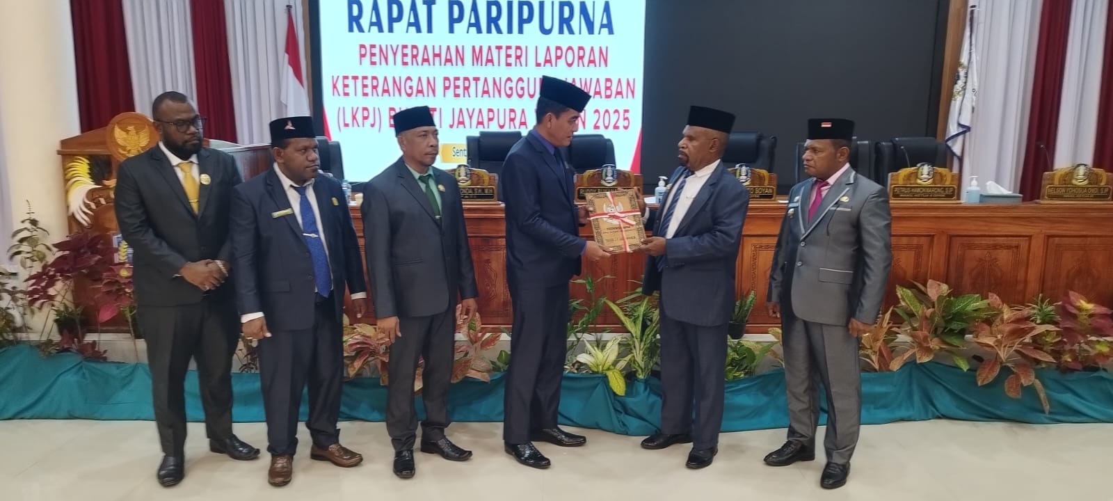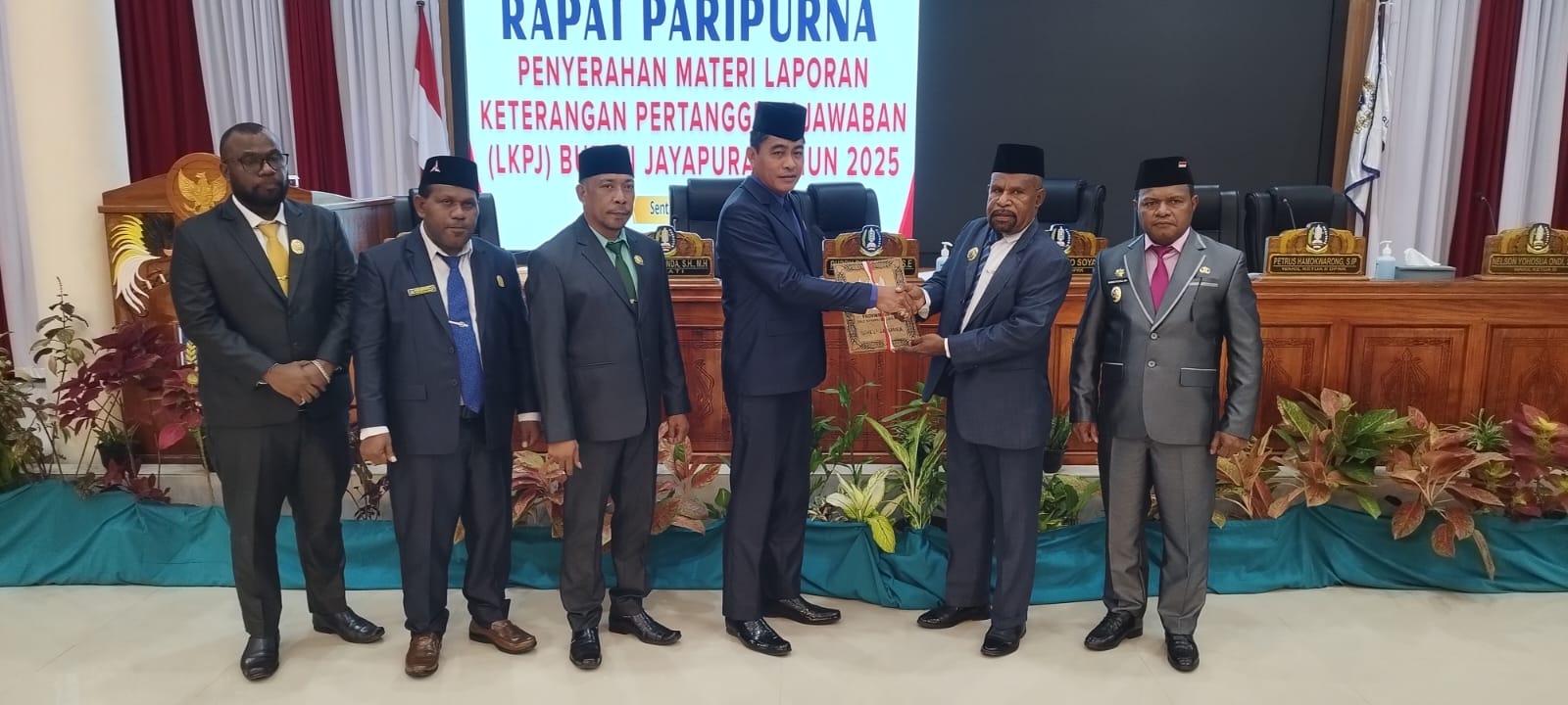 Rapat paripurna kemudian ditutup dengan penyerahan dokumen LKPJ dari Bupati Jayapura kepada Ketua DPRK sebagai bentuk pertanggungjawaban resmi atas penyelenggaraan pemerintahan selama tahun anggaran 2025.