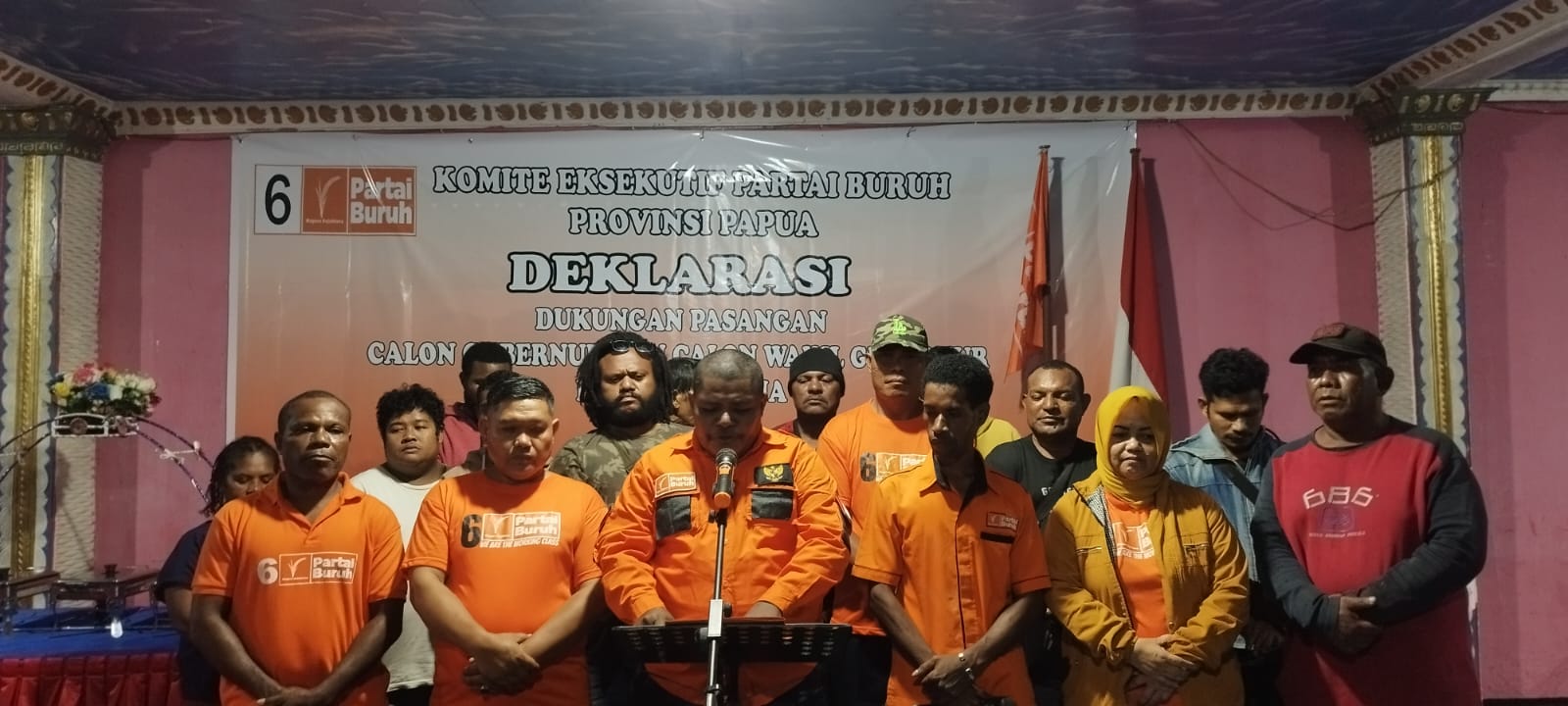 Deklarasi dukungan tersebut berlangsung di Sekretariat Komite Eksekutif Partai Buruh Provinsi Kabupaten Jayapura, di Kampung Yahim, Distrik Sentani, Kabupaten Jayapura, Papua, Selasa, 27 Agustus 2024.