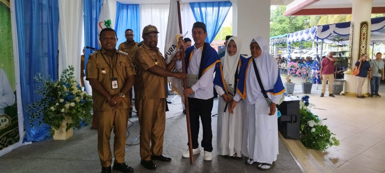 Bupati Jayapura, Yunus Wonda, didampingi Wakil Bupati Haris Richard S. Yocku, secara langsung melepas para jamaah haji kloter 29 gelombang kedua. Prosesi ini ditandai dengan penyematan syal kepada perwakilan jamaah, sebagai simbol doa dan dukungan dari pemerintah daerah.