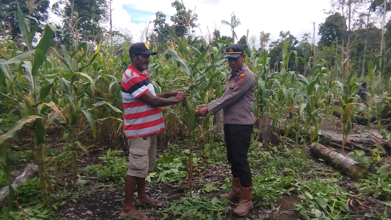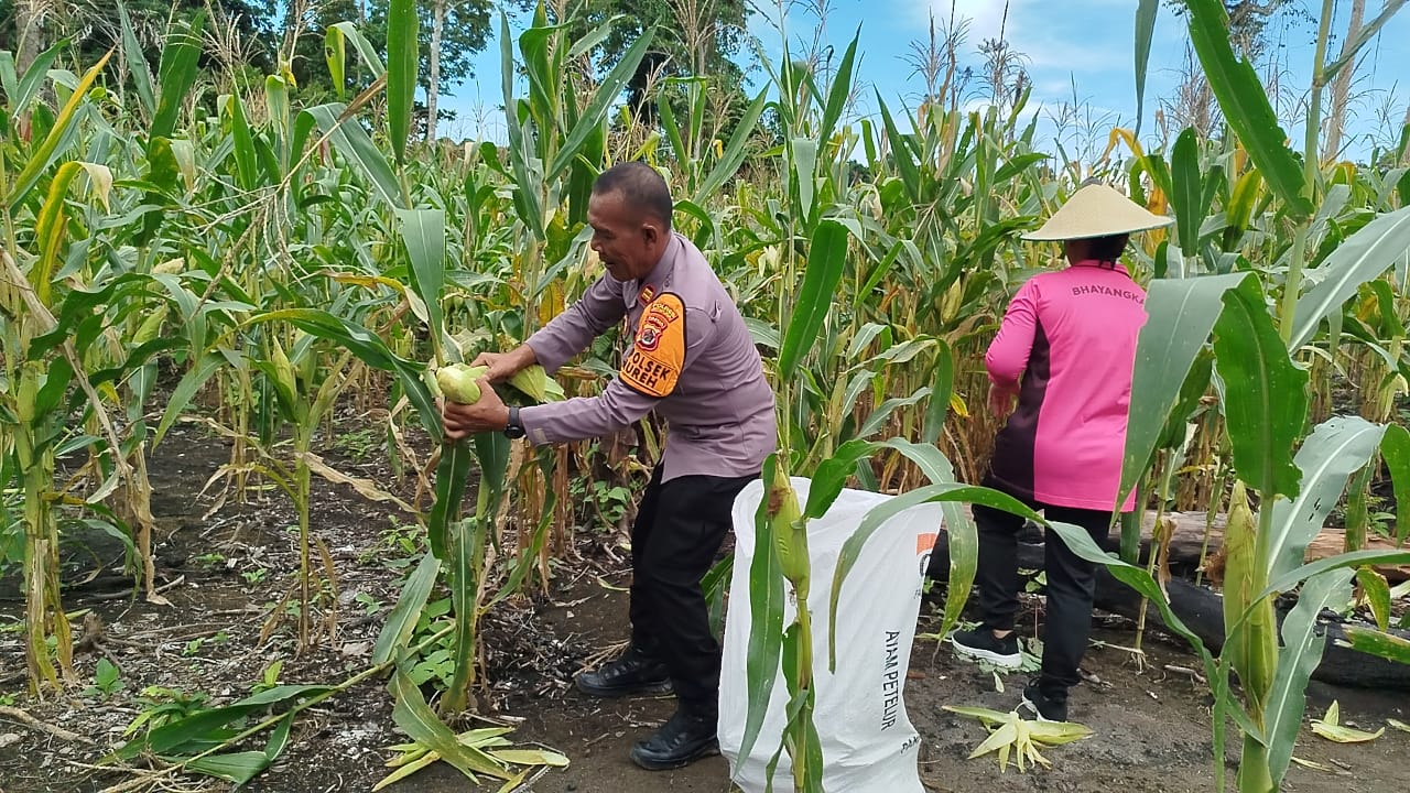 Foto: istimewa / Kapolsek Kaureh bersama petani Kampung sisik Panen jagung, (8/4).