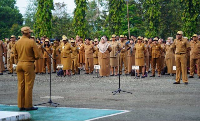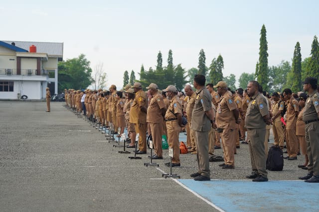 Foto: istimewa | Suasana Apel Pagi Senin (7/7) Dipimpin Asisten I Setda Kabupaten Jayapura, Gilberd Yakwart, S.STP di Lapangan Apel Gunung Merah Sentani.
