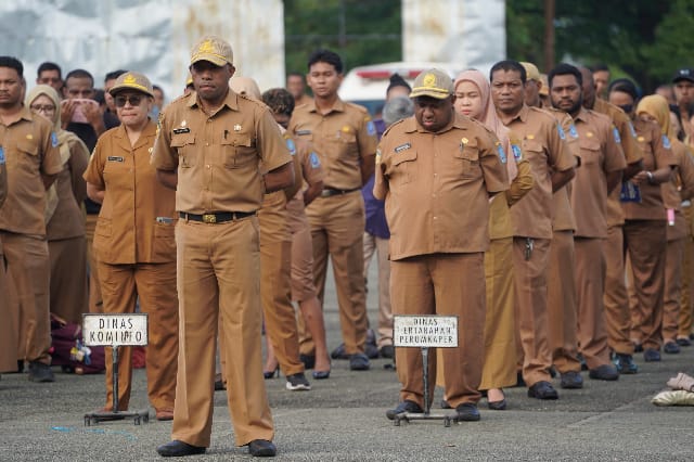 Ajakan tersebut disampaikan saat Gilberd Yakwart menjadi pembina apel pada Apel Pagi ASN di Lapangan Gunung Merah Sentani, Senin (7/7).