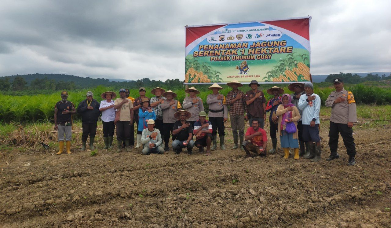 Penanaman jagung tersebut melibatkan berbagai unsur, mulai dari jajaran Polres Jayapura, pemerintah distrik, tokoh adat, hingga masyarakat setempat.