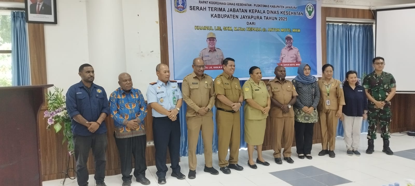 Dalam acara tersebut, jabatan Kepala Dinas Kesehatan resmi diserahterimakan dari Khairul Lie, S.KM., M.Kes., kepada dr. Anton Tony Mote, M.KM., yang kini menjabat sebagai Plt Kadinkes Kabupaten Jayapura.