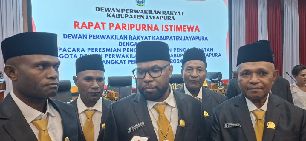 Foto: Irfan |Nelson Yohosua Ondi (NYO) bersama tujuh anggota DPRK mekanisme pengangkatan lainnya usai pelantikan…