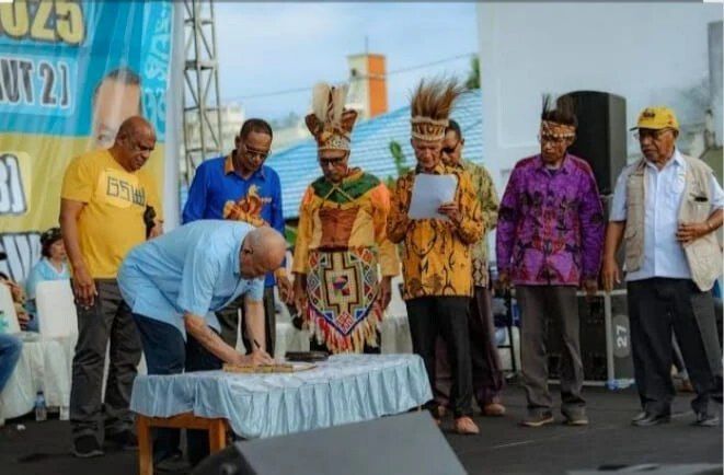 Foto: Andre | Kampanye di Lapangan Hamadi, Gubernur Matius Fakhri menandatangani kesepakatan Sekda dari Saireri,…