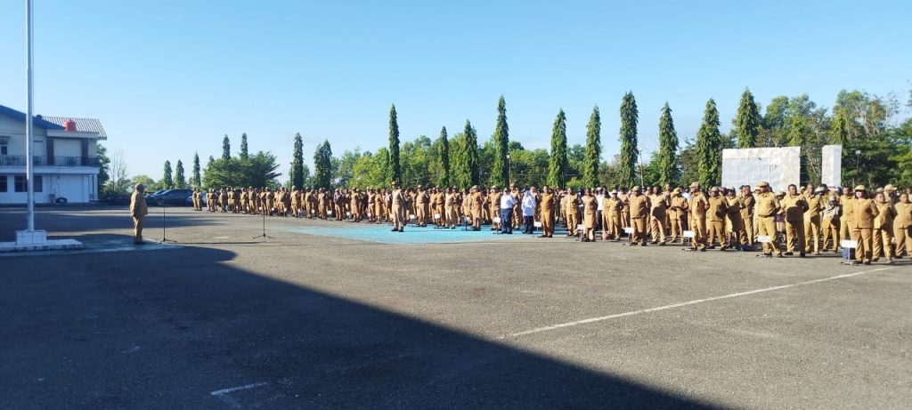 Foto: Irfan | Bupati Jayapura Dr. Yunus Wonda, SH., MH., ketika memimpin Apel Senin Pagi,…