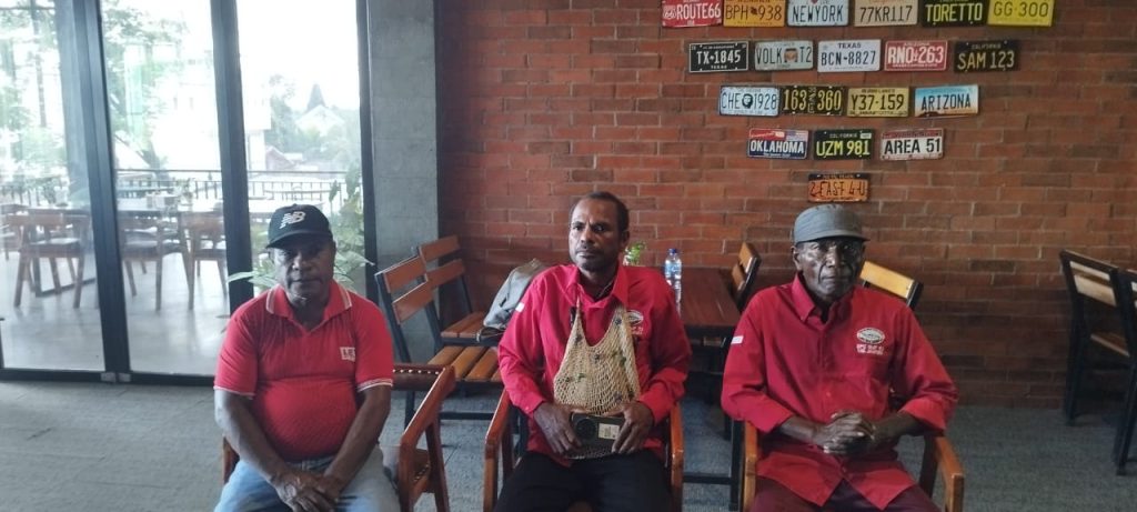 Foto: Irfan | Tampak ketua DPC Barisan Merah Putih (BMP) Kabupaten Jayapura Yakob Fiobetauw bersama…