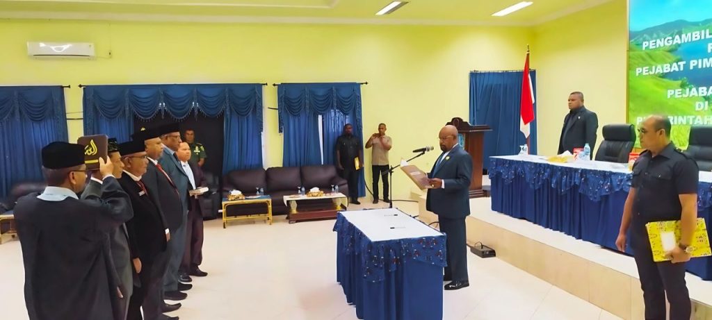 Foto: Irfan / Bupati Jayapura saat mengambil sumpah pejabat di Aula Kantor Bupati, Sentani. Sentani,…