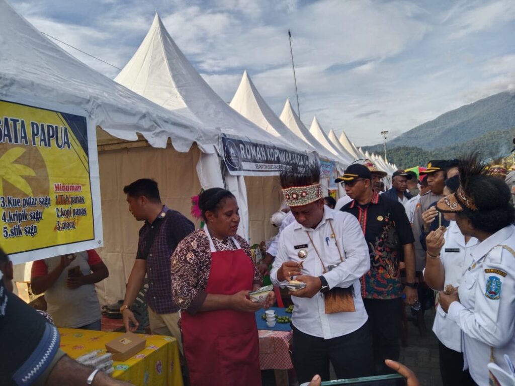 (CAPTION FOTO): Nampak Pj Bupati Jayapura Semuel Siriwa ketika mengunjungi salah satu stand usai membuka…