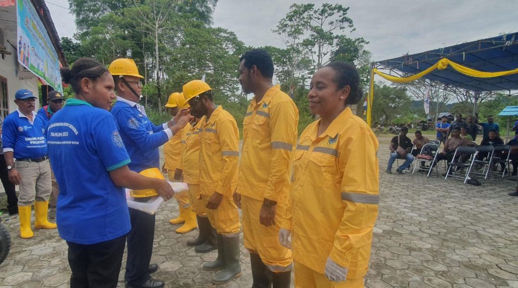 Foto: Willy | Sekda Mamberamo Raya Manogar Sirait memasang atribut kepada Petugas Kebersihan Sampah Dinas…