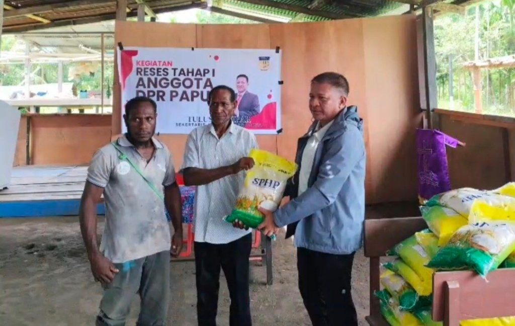 Foto: istimewa | Tampak Anggota DPR Papua Tulus Sianipar, ketika membagi beras ke warga Kampung…