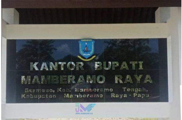 Foto: Willy | Tampak papan nama kantor bupati Kabupaten Mamberamo Raya, di Burmeso. Kasonaweja, Jurnal…