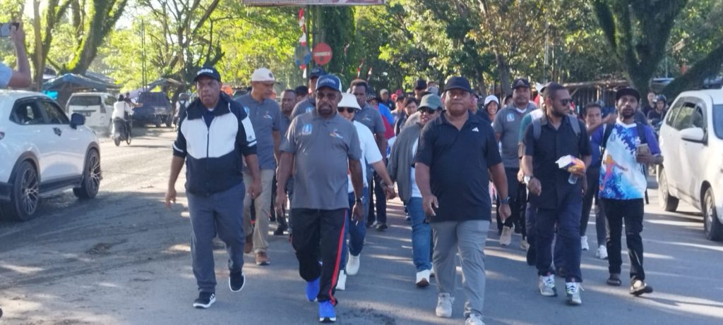 Foto: istimewa | Bupati Jayapura Dr. Yunus Wonda, SH., MH., ketika jalan santai peringkatan Haornas…