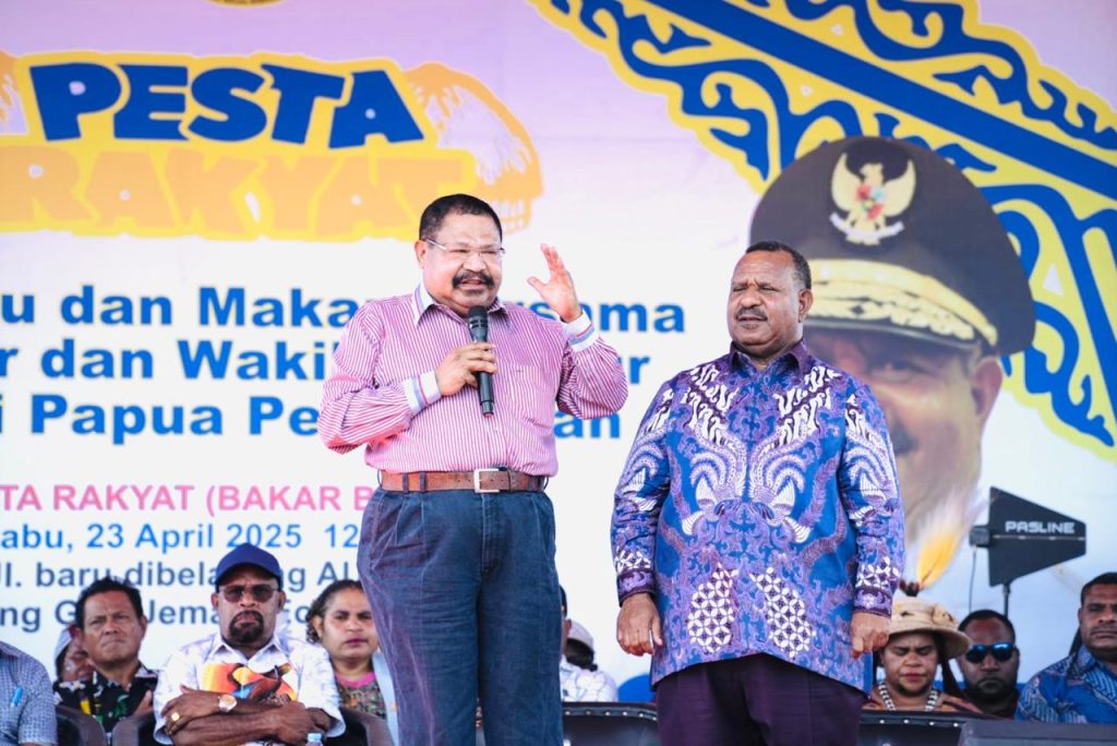 Foto: Istimewa – Gubernur John Tabo dan Wakil Gubernur Ones Pahabol saat menyampaikan pesan persatuan…