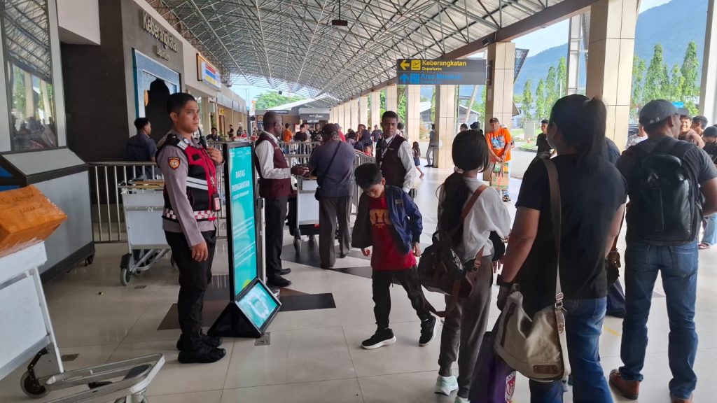 Foto: istimewa | Tampak aparat kepolisian resort Jayapura melakukan pengamanan di Bandara Sentani, Rabu (19/4). …