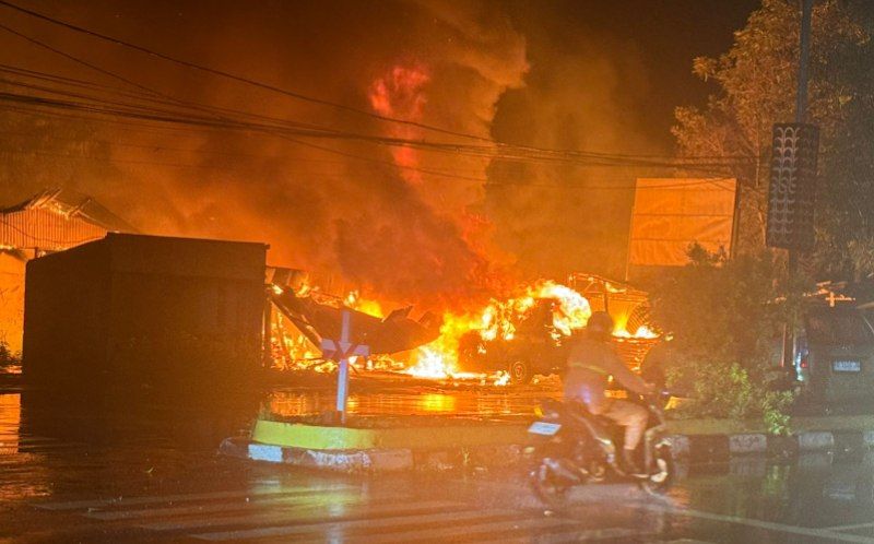 Foto: istimewa | Tampak petugas Pemadam Kebakaran di bantu aparat kepolisian ketika memadamkan api yang…