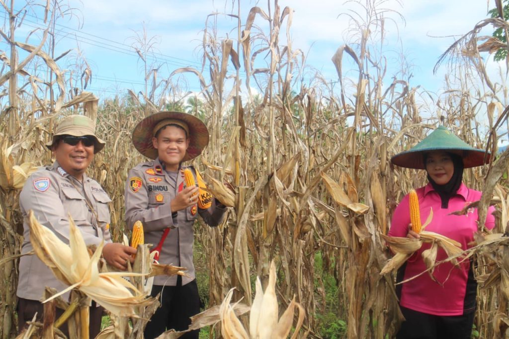 Foto: istimewa / Nampak Kapolsek Nimbokrang Ipda Sindu Matra Wiratama tengah memanen jagung, (16/4). Sentani,…