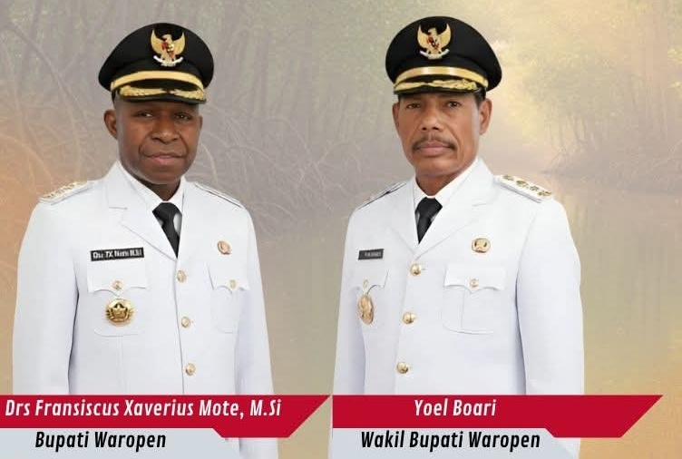 Foto: istimewa | Bupati Waropen Drs. FX Mote, M.Si dan Wabup Yoel Boari Jayapura, jurnalmamberamofoja.com…