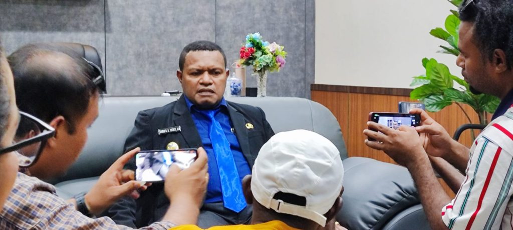 Foto: Irfan / Wakil Bupati Jayapura, Haris Richard S. Yocku saat diwawancarai di ruang kerjanya,…