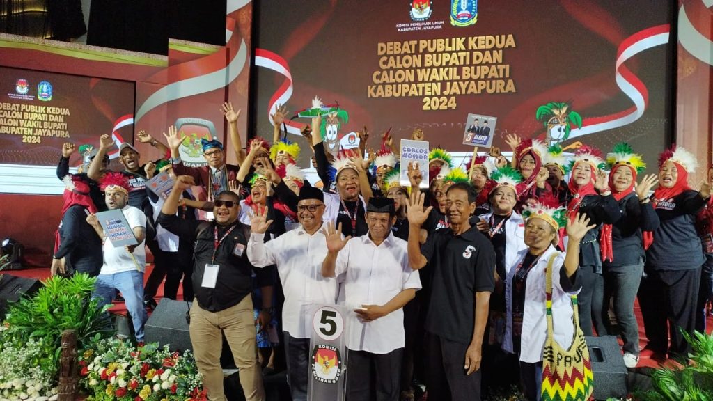 Dok ist/ Paslon Algito bersama timses dan relawan seusai debat kede, Senin (18/11) Sentani, jurnalmamberamofoja.com…
