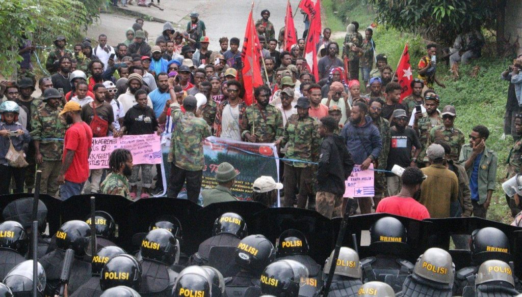 Foto: istimewa | Tampak aparat kepolisian menghadang pembubaran masa KNPB, di Pos 7 Sentani, Jumat…