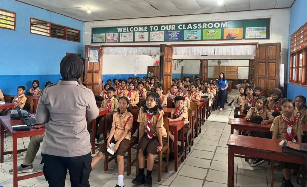 Foto: istimewa | Tampak Brigpol. Hartati sedang memberikan materi kepada siswa-siswi SD Abeale 2 Sentani,…