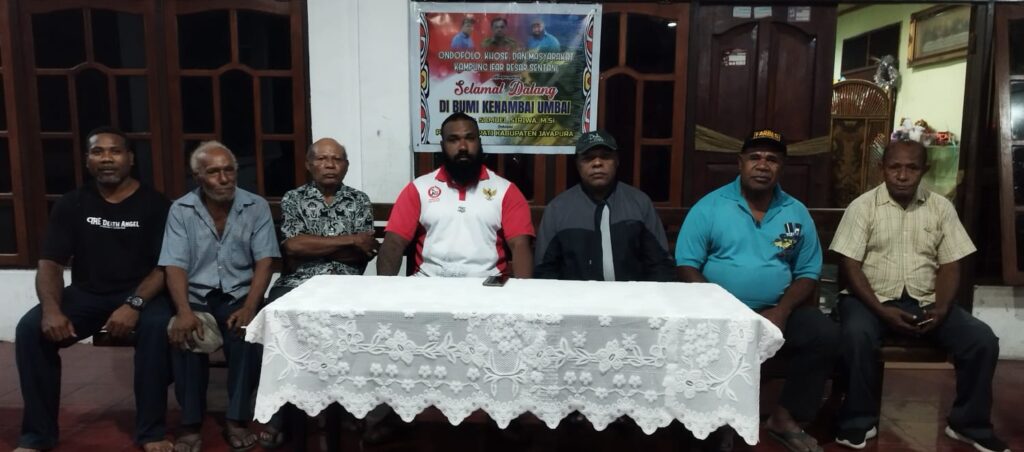 (CAPTION FOTO): Tokoh Masyarakat Adolf Yoku didampingi Ondofolo Heaiseai Khabheitelouw Ifar Besar Alfius Imerson C….