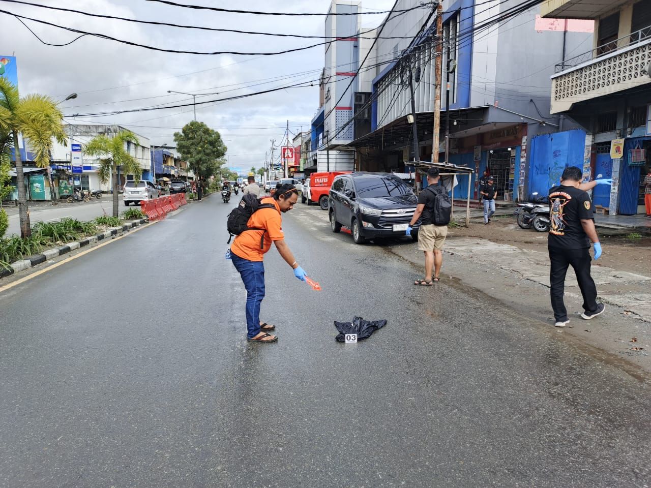 Foto: istimewa / Penyidik sedang menunjukan TKP di depan Hotel Horex Sentani, (2/4).