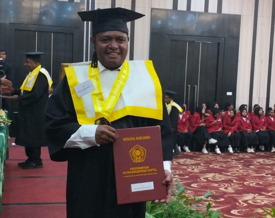 Jayapura, jurnalmamberamofoja.com – Di tengah kesibukannya sebagai Wakil Bupati Jayapura, Haris Richard S. Yocku, S.H., berhasil menuntaskan pendidikan sarjana hukum di Universitas Muhammadiyah Papua. Momen tersebut bertepatan dengan prosesi wisuda sarjana angkatan XXI dan pascasarjana Ilmu Komunikasi Muhammadiyah Papua yang digelar di salah satu hotel di Kota Jayapura, Selasa (21/4/2026).
