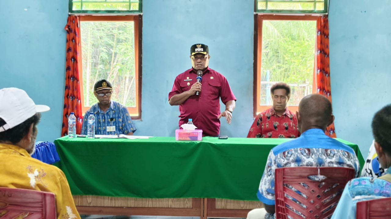 Foto: istimewa | Tampak Wabup Jayapura Haris Richard S. Yocku, SH., ketika turun langsung di Balai Kampung Yakore,. Distrik Demta, Kamis (12/2).